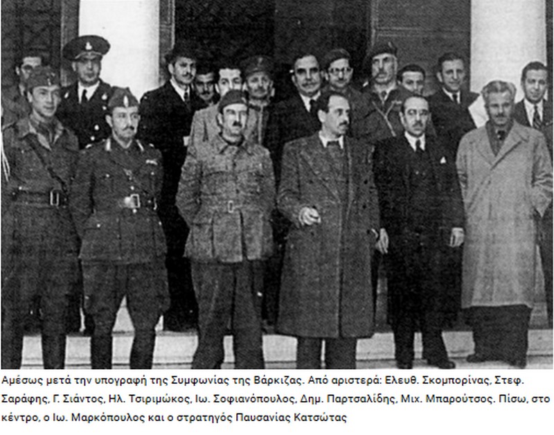 Στις 12 Φεβρουαρίου του 1945, στις 4.30 το πρωί, ανάμεσα στις ηγεσίες του ΕΑΜ και κυβέρνησης των Αθηνών υπογράφηκε στη «Βίλλα Κανελλοπούλου» στη Βάρκιζα, η ομώνυμη συμφωνία.