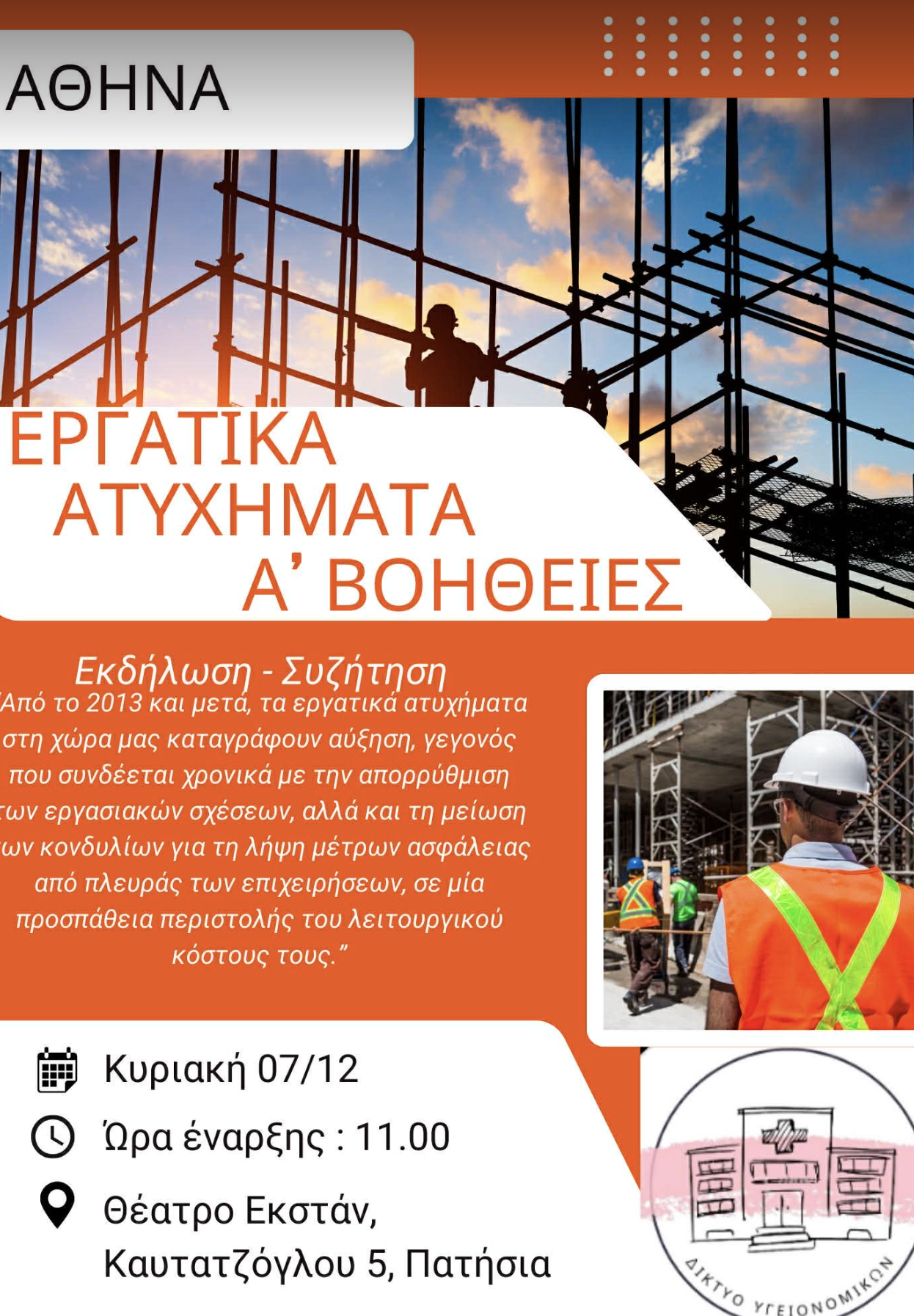 το ΔΙΚΤΥΟ ΥΓΙΕΙΟΝΟΜΙΚΩΝ σας προσκαλεί σε εκδήλωση – συζήτηση με θέμα: Εργατικά Ατυχήματα – Ά Βοήθειες