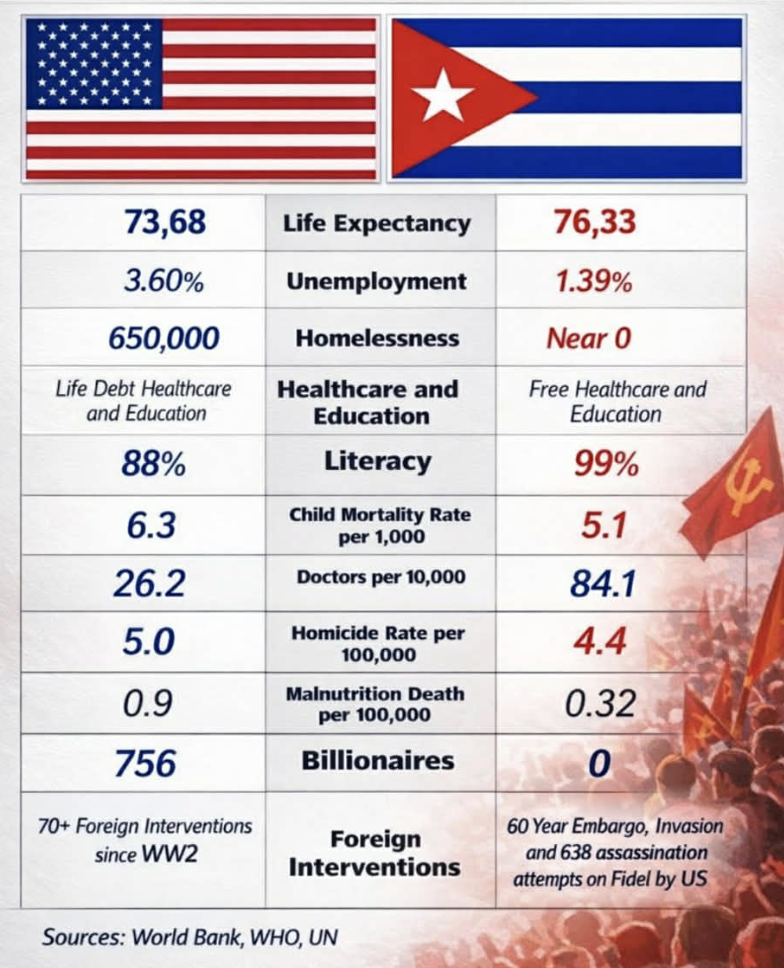 Παρά τον γενοκτονικό οικονομικό, εμπορικό και χρηματοοικονομικό αποκλεισμό των ΗΠΑ που κρατά πάνω από 60 χρόνια, και τη μόνιμη απειλή του αμερικανικού ιμπεριαλισμού, η Κούβα στέκεται όρθια.